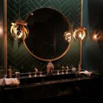 En este proyecto se destaca el empleo de iluminación tenue, una paleta cromática en tonos bajos en luz, elementos en mármol, toques en dorado, la sofisticación del terciopelo y la incorporación de madera para generar una atmósfera cálida.